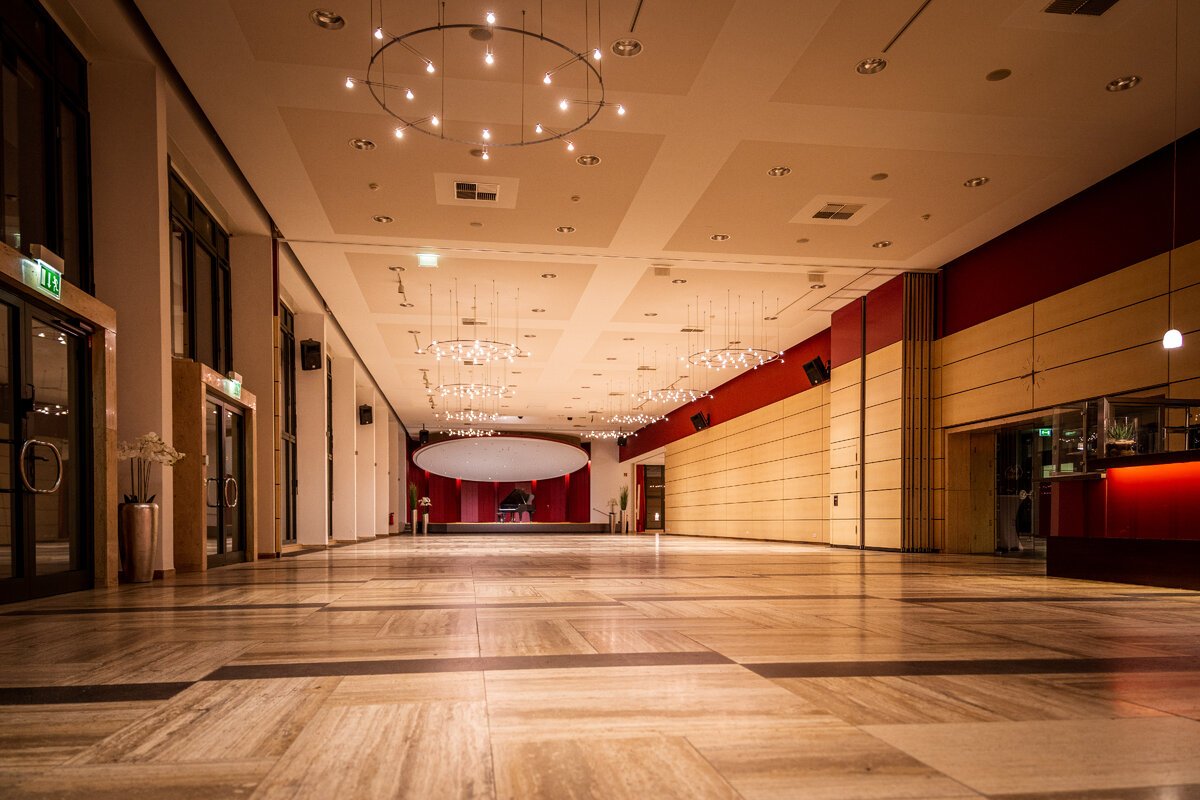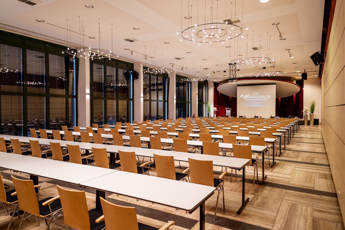 Für seine hervorragende Akustik bekannt ist der große Saal der Wandelhalle. Bis zu 550 Gäste finden hier dank variabler Bestuhlungsmöglichkeit Platz.
